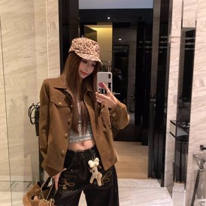 老钱风穿搭咖色翻领外套女装秋季2025新款短款感气质工装夹克