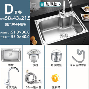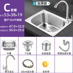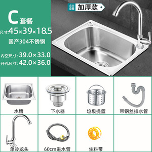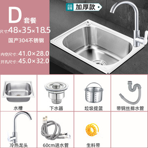 洗菜盆单槽304不锈钢水槽厨房加厚洗碗池水池家用阳台大小洗手盆