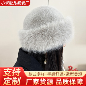 冬季帽子批发女加厚保暖仿皮草时尚百搭毛绒渔夫帽防风毛绒蒙古帽