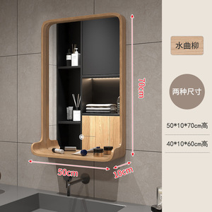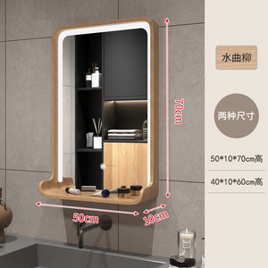 简约浴室镜子实木卫生间镜子化妆镜壁挂洗手台led挂墙卫浴镜厂商