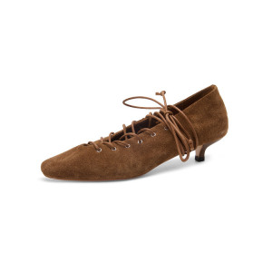羊皮猫跟单鞋女绑带罗马单鞋秋季新款方头细跟中跟浅口单鞋女鞋40
