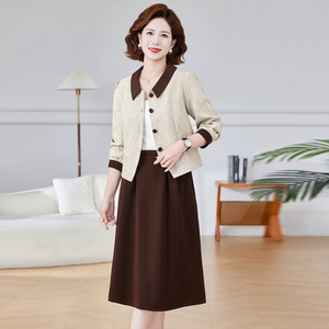 时尚香风套装春秋2025新款高级气质翻领上衣半身裙两件套遮肉外穿