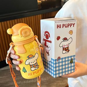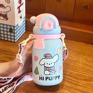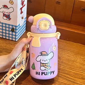 小狗大容量保温杯女不锈钢水壶可爱高颜值吸管水杯儿童保温杯水杯