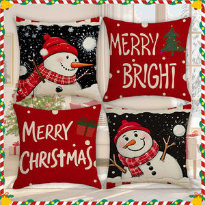跨境圣诞雪人印花抱枕套亚麻圣诞节沙发装饰卧室床头靠枕套靠垫套