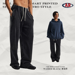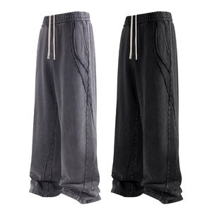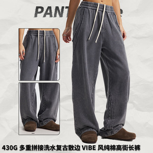 秋冬新款2025多重工拼接洗水复古散边VIBE风纯棉高街潮牌男女长裤