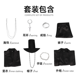 猎魔男团K-POP沙加男孩秦宇cos男团贝比黑色打歌服cosplay套装