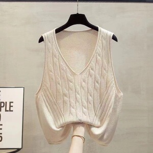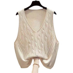 麻花v领针织马甲背心女2025春秋装新款宽松外穿马夹叠穿毛衣坎肩