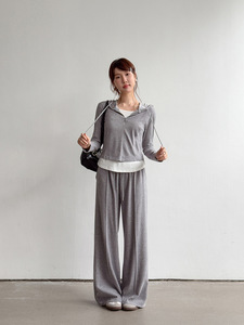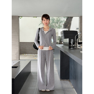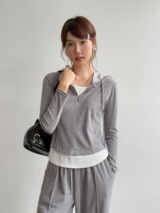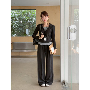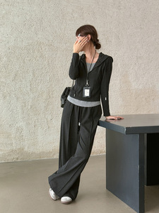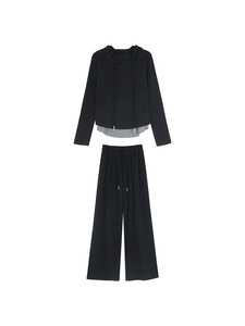 【里约书店 套装】歌铭假两件连帽卫衣+系带直筒长裤两件套W484C