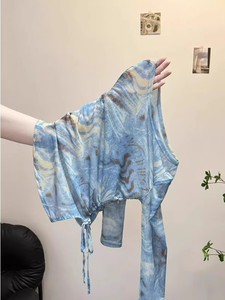 法式扎染网纱防晒罩衫女夏季薄款不规则纯欲辣妹抽绳长袖T恤上衣
