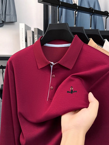 爆款男士POLO衫高品质镶嵌门禁T恤衫秋季长袖翻领长袖刺绣上衣男