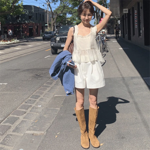 2025年新款骑士靴女平底显瘦不过膝长靴大筒围复古绒面西部高筒靴
