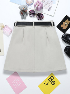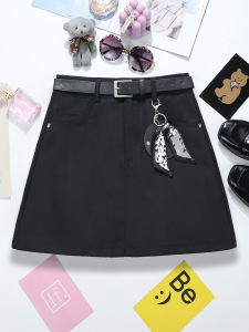 配皮带丝巾扣~设计感高腰短裙秋季新款小个子外穿百搭直筒包臀裙