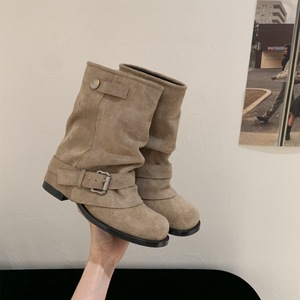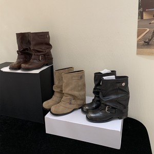 粗跟棕色美拉德堆堆马丁靴女鞋2025新款春秋单靴显瘦配裙子短靴子