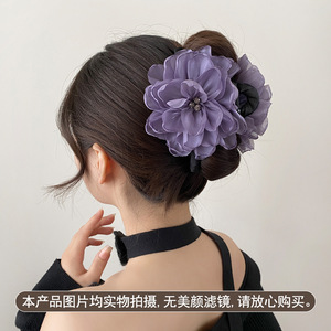 【牡丹】超仙网纱花朵抓夹女高端发夹后脑勺盘发鲨鱼夹发量大发饰