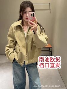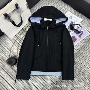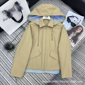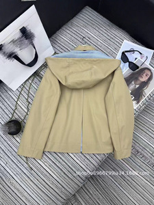 【南油薇薇高端女装】25新款复古港风拼接条纹刺绣连帽风衣外套