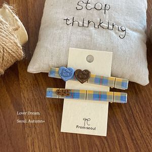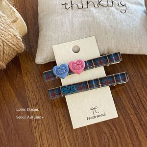 2只装韩国秋冬新款爱心字母格子鸭嘴夹发夹 时尚刘海夹侧边夹发饰