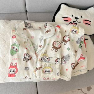 云朵棉秋季新款睡衣女长袖翻领卡通甜美可爱高级网红风家居服套装