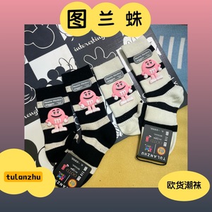 25秋冬新款袜子女欧货个性潮袜条纹卡通袜子休闲韩版百搭中筒袜棉