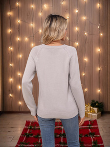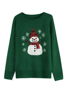 欧美秋冬新款跨境亚马逊圣诞节毛衣圣诞可爱雪人刺绣套头针织衫女
