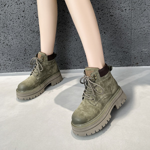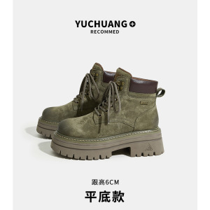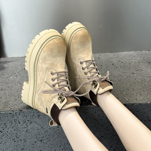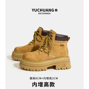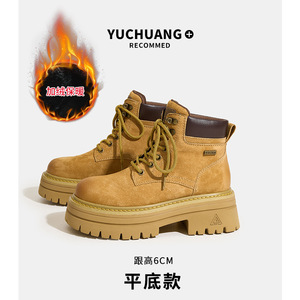 白鹿马丁靴女秋季新款户外徒步登山大黄靴头层猪皮工装靴子女