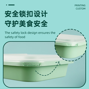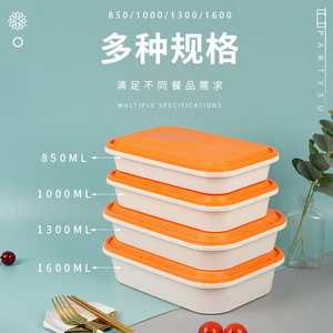 一次性饭盒长方形防盗锁扣餐盒可印刷加厚密封防漏外卖便当打包盒