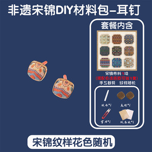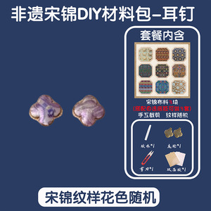 【耳饰】方形耳钉材料包-宋锦随机3片