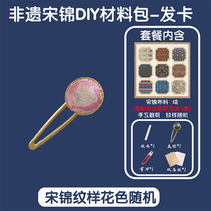 【发饰】椭圆发卡材料包-宋锦随机3片