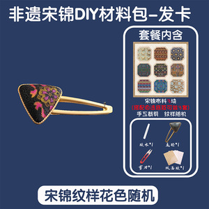 【发饰】三角发卡材料包-宋锦随机3片