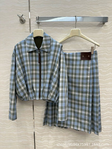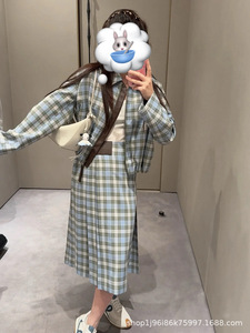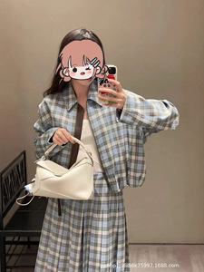 25夏季新款格纹褶皱夹克外套长半裙显瘦法式优雅慵懒风简约时髦