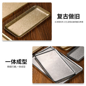 复古304不锈钢长方形盘金色烧烤烤肉盘咖啡厅托盘平底浅盘子定制