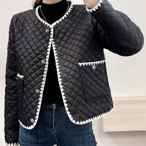 菱格短款棉服女2025新款秋冬季气质减龄小香风轻薄小棉衣无领外套