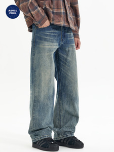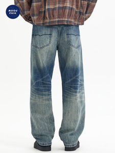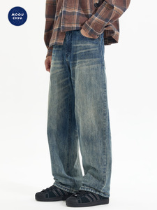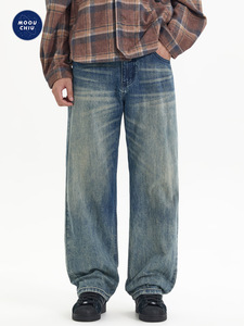 沐丘男装∣2025秋季新款美式高街渐变复古牛仔裤男士宽松直筒长裤