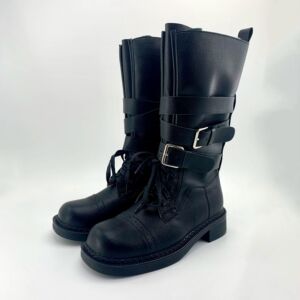 牛皮小众真皮复古中筒西部靴女粗跟帅气机车靴子马丁靴显瘦骑士靴