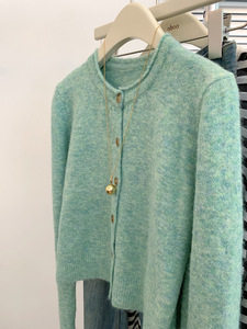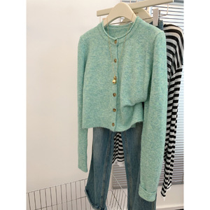 绿色长袖针织毛衣开衫外套女上衣2025新款慵懒风宽松早秋韩系穿搭