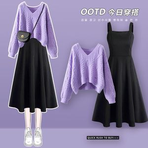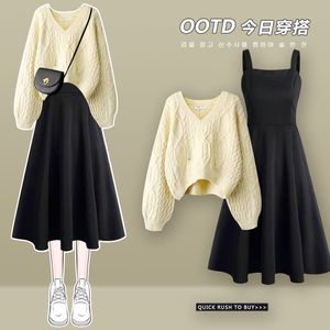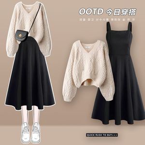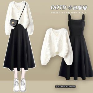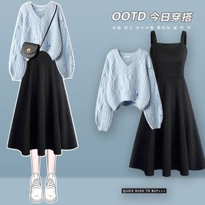 大码女装秋冬套装女2025新款慵懒宽松毛衣女显瘦吊带连衣裙两件套