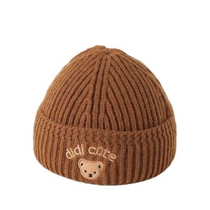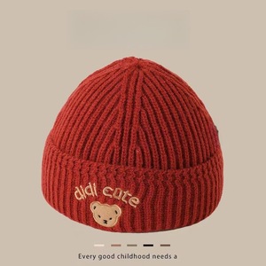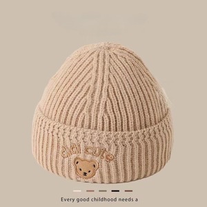 宝宝毛线帽秋冬新款韩风刺绣小熊儿童护耳帽子可爱婴幼儿针织帽