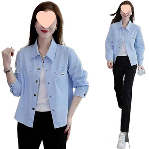 休闲外套女短款年春秋新款小个子时尚洋气宽松棉衬衫上衣潮