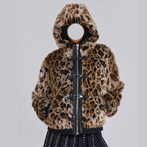 豹纹金属扣子拉链外套 欧美跨境2025秋季新款连帽宽松外套卫衣