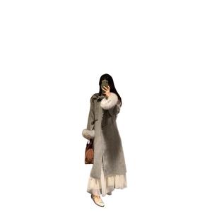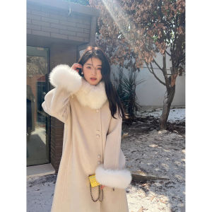 法式名媛风中长款呢大衣2025秋冬季外套女大毛领时尚呢子白色大衣