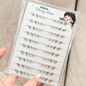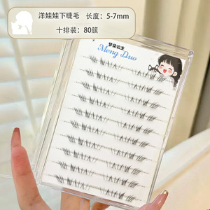 梦朵公主 洋娃娃透明梗下睫毛自然仿真刷胶自粘单簇分段式淡颜