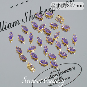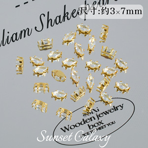 【3*7六爪马眼】镀金高保色水钻锆石爪钻手工diy材料串珠手链配件