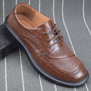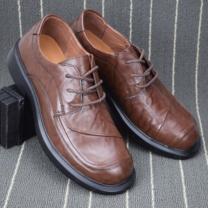 外贸真皮商务低帮休闲男鞋软底软面系带圆头男士头层牛皮宽头鞋男