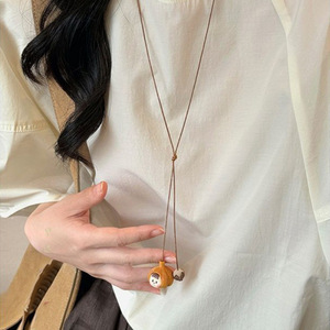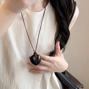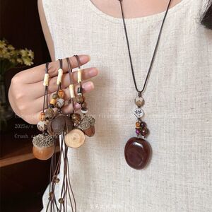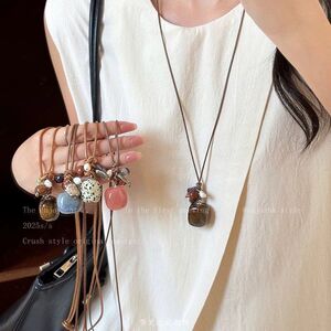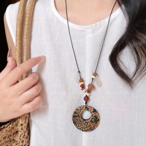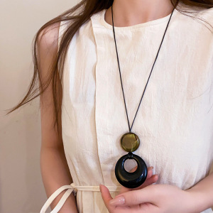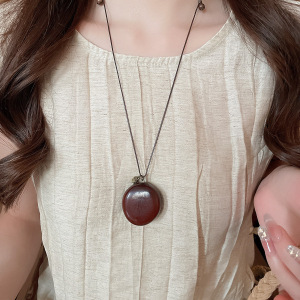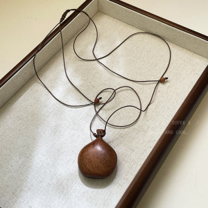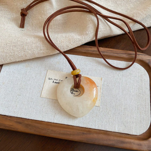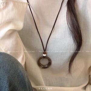 21#项链-黑色-奶茶色-皮绳-扁圆