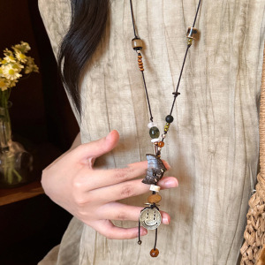 新中式平安扣长款挂脖吊坠项链轻奢小众毛衣链时尚气质百搭项饰女