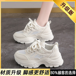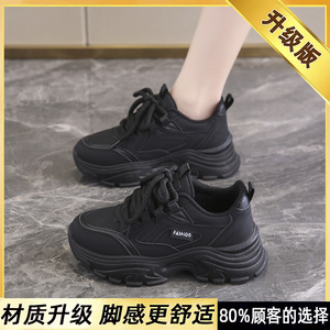 踩屎感34小码厚底老爹鞋女爆款春秋2025年新款皮面防水运动休闲鞋