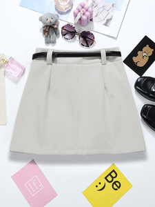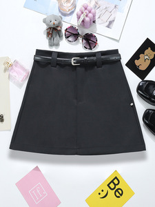 现货时尚纯色A字裙秋季新款高腰韩版小个子气质半身裙配腰带9645
