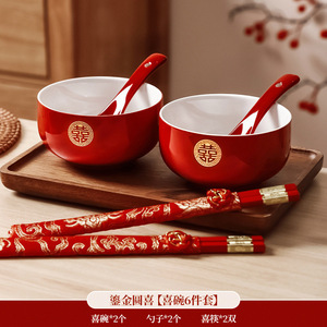 敬茶杯结婚碗筷套装喜碗改口敬酒茶具一对碗红色婚礼陪嫁用品大全