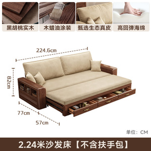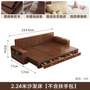 黑胡桃实木沙发床现代简约两用客厅小户型多功能储物可推拉沙发