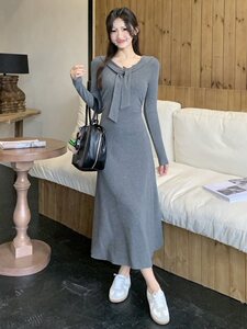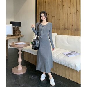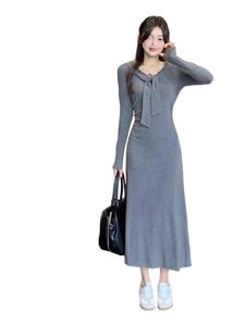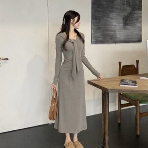 ✿灰色连衣裙(版)【设计感小众/冷淡系/感/巨显瘦遮肚子/遮肉/复古/修身/别致超好看/藏肉/小个子/