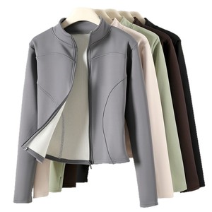 H115鲨鱼皮瑜伽外套女秋冬季跑步运动骑行服加绒长袖修身健身上衣